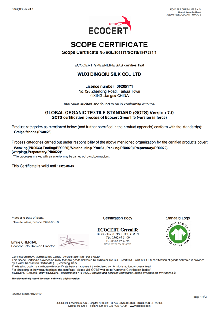 Organic fabric production meets the highest global standards for environmental and social responsibility.
